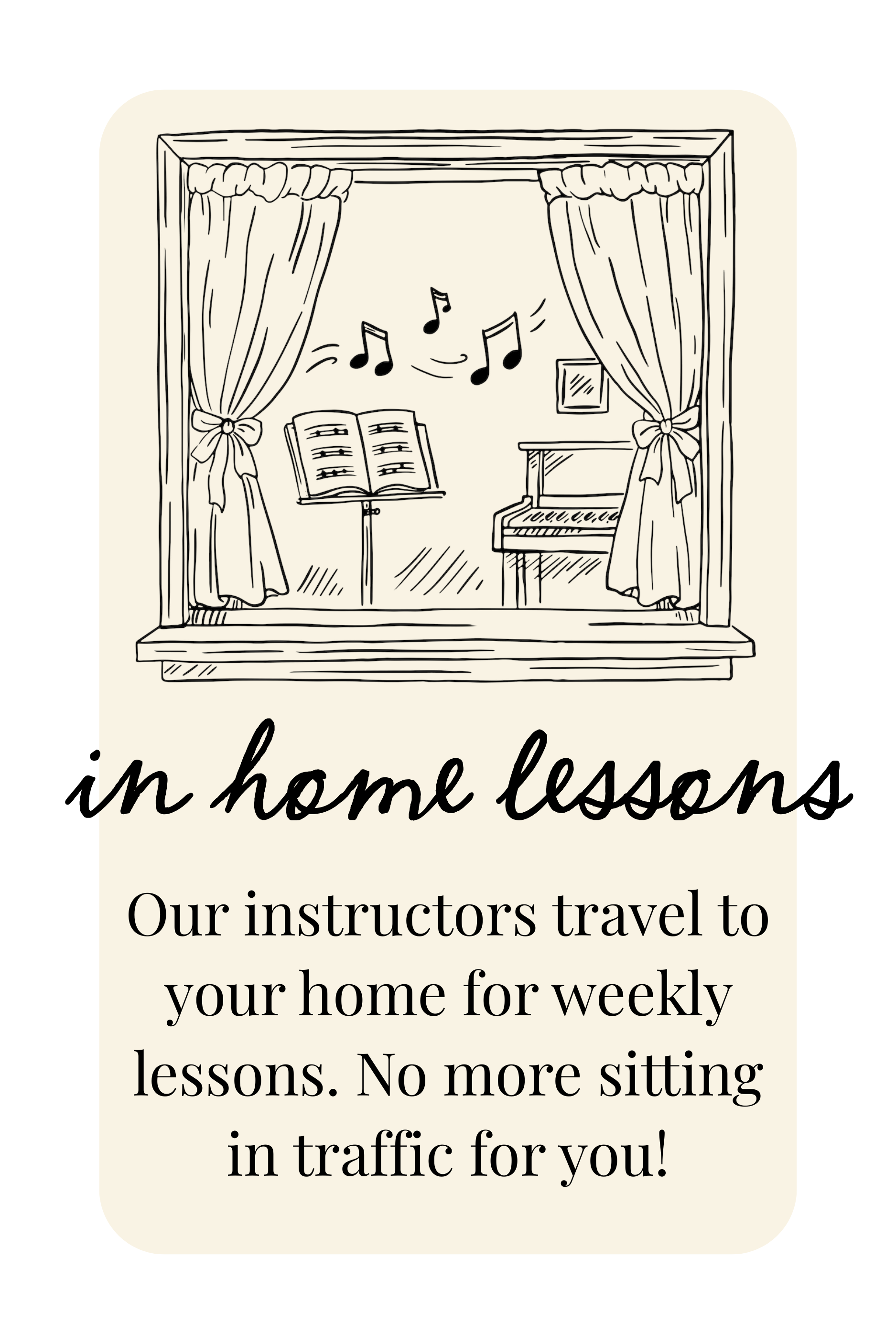 We currently offer piano, voice, violin and guitar lessons.